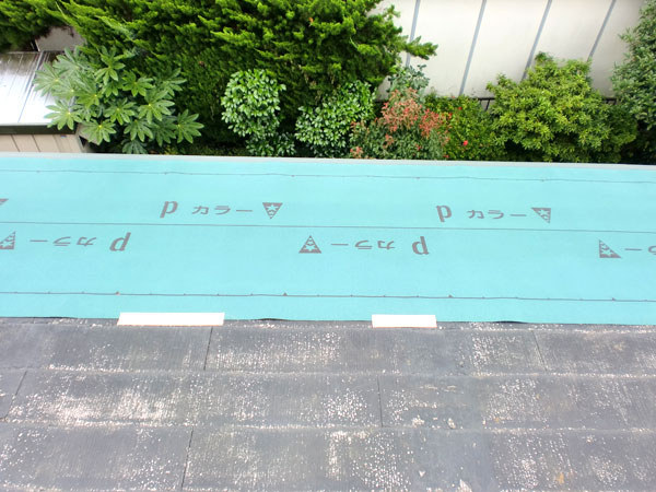 既存屋根、新築耐火野地専用のスターターS型唐草を使ったアスファルトルーフィング敷き工法。着色スレート平瓦屋根(コロニアル等)、アスファルトシングル屋根の改修に最適。